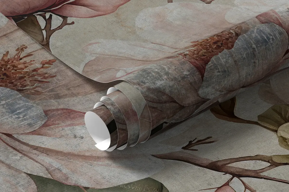 Fototapet Akvarell med pioner och gröna blad Nr. u75382
