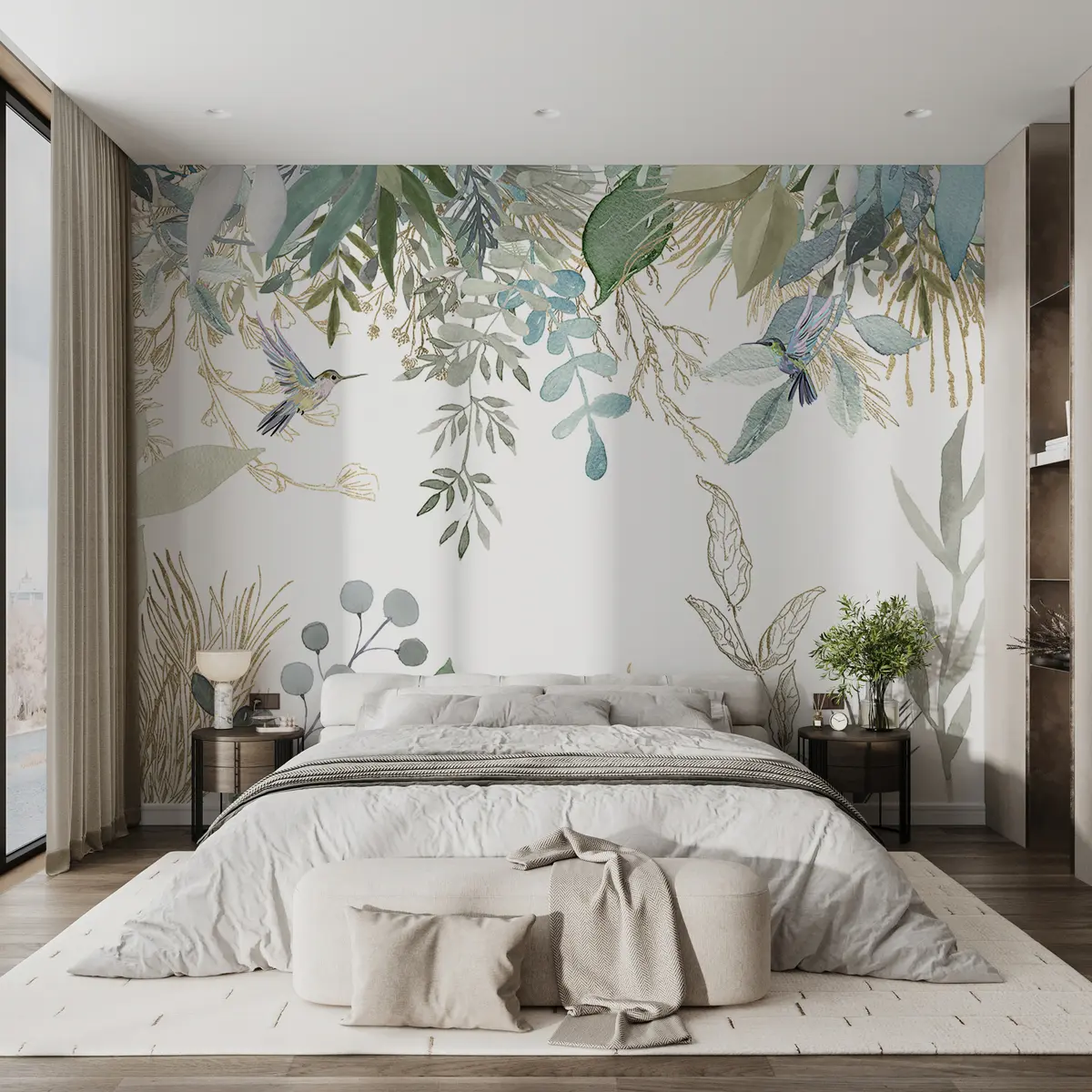 Fototapet Exotiska växter och kolibrier Nr. u17579