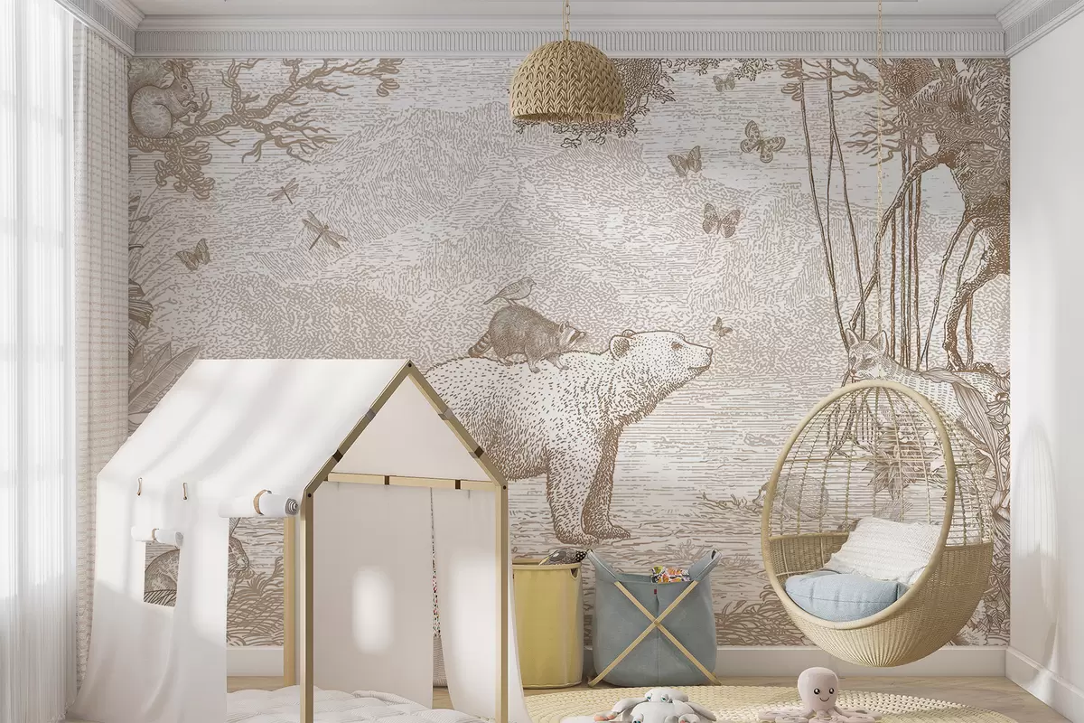 Fototapet Sagoskog med bedårande djur Nr. u95425