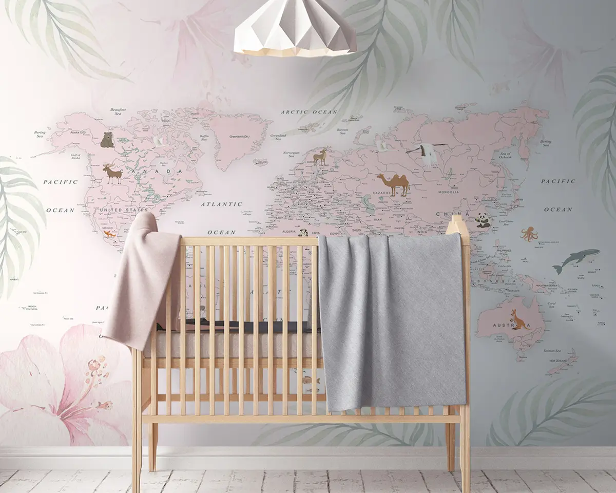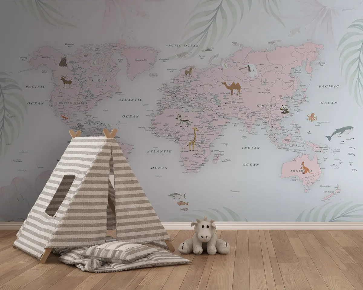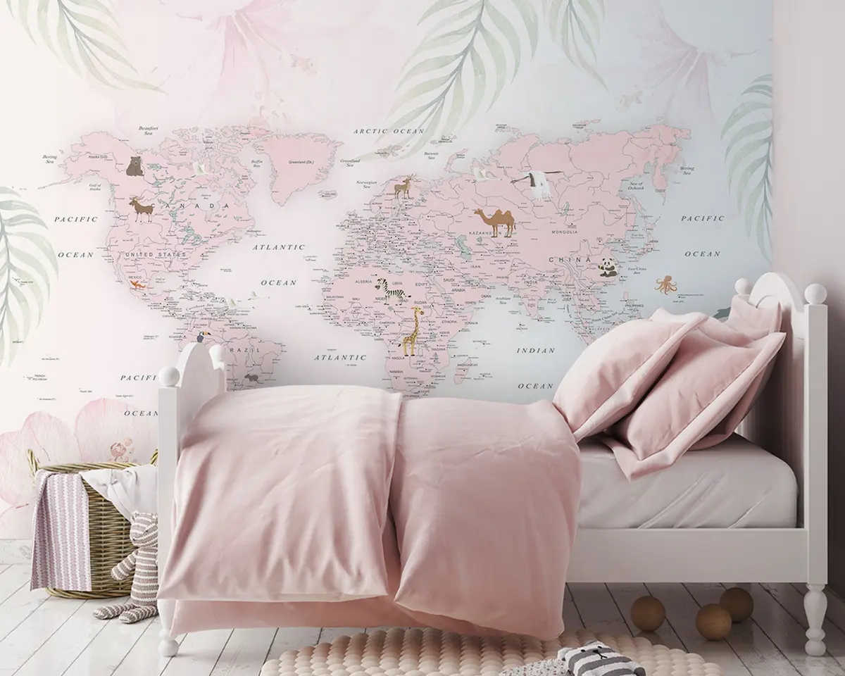 Fototapet Världskarta för tjejer i rosa stil Nr. u79832