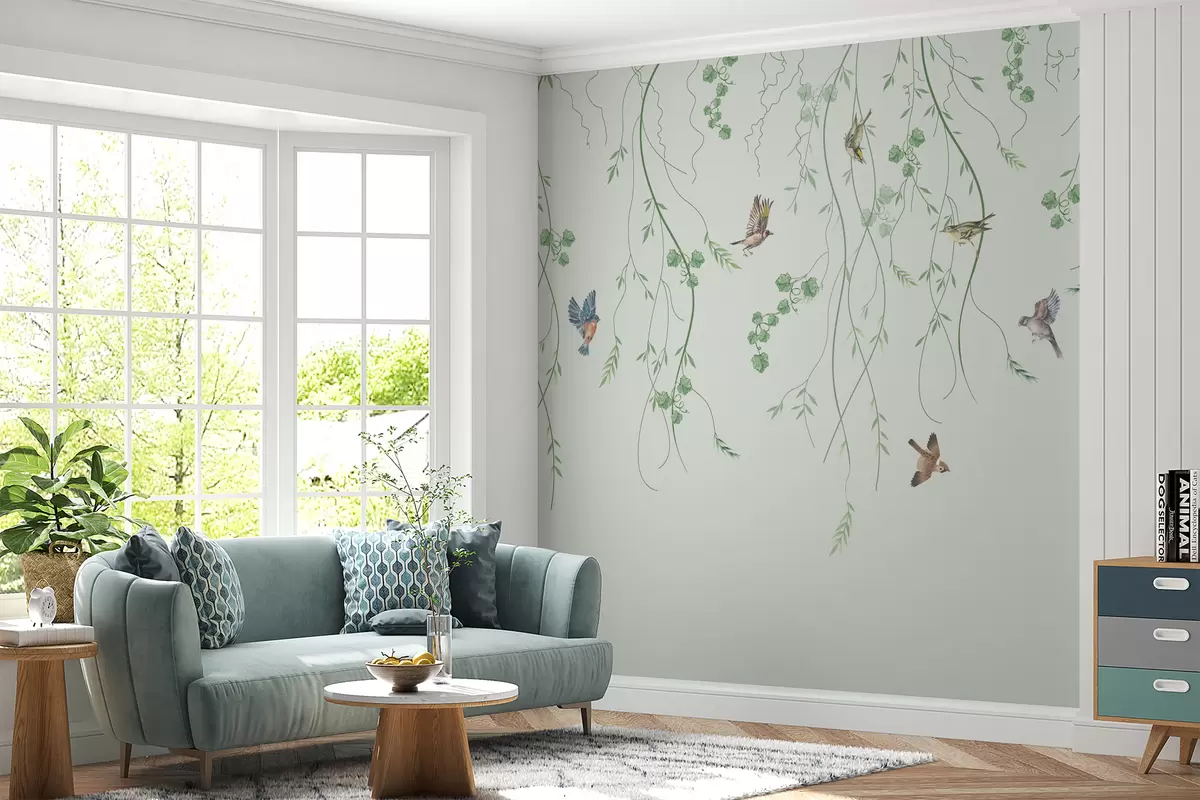 Fototapet Grenar med fåglar, Chinoiserie u94493
