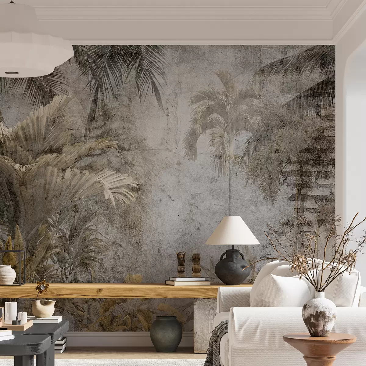 Fototapet Tropisk skog på en betongvägg Nr. u71248
