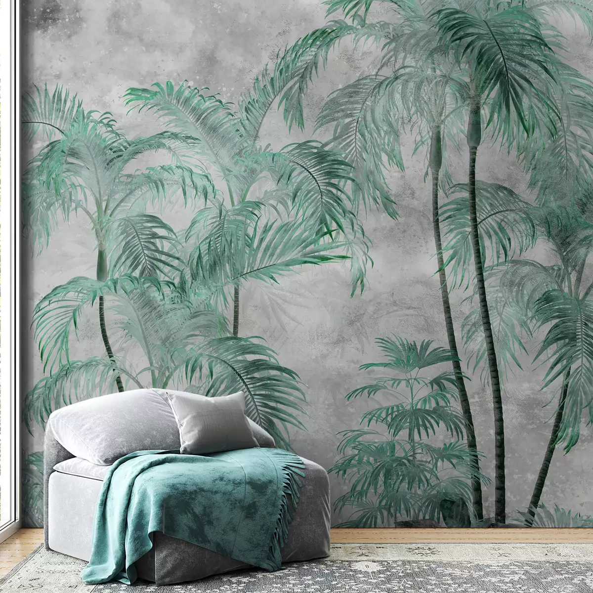 Fototapet Tropiska palmer på en betongvägg Nr. u98586v1