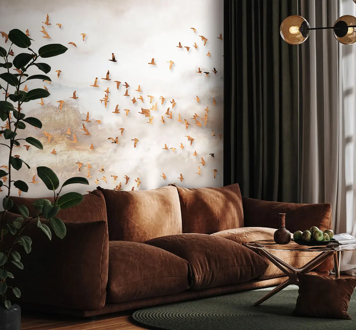 Fototapet Flock av fåglar i bergen Nr. u93537