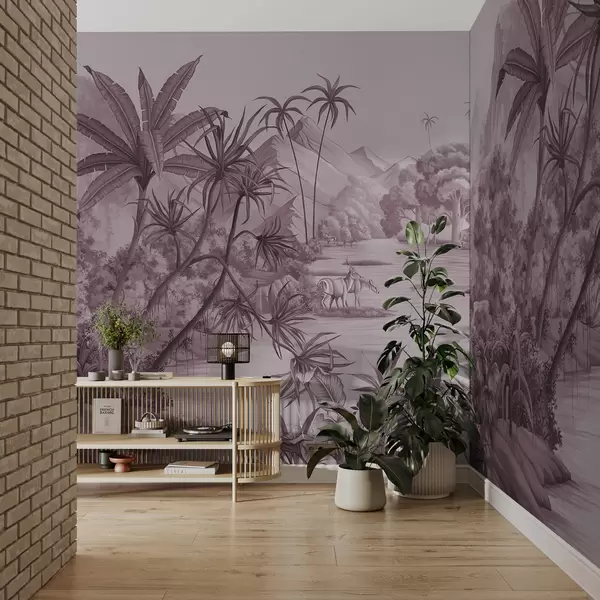 Fototapet Svartvita tropiker i lila färger Nr. u59040v3