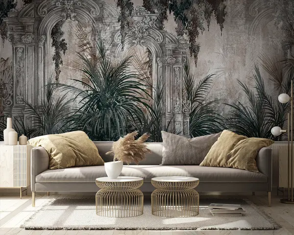 Fototapet Forntida arkitektur med tropiska löv Nr. u95500