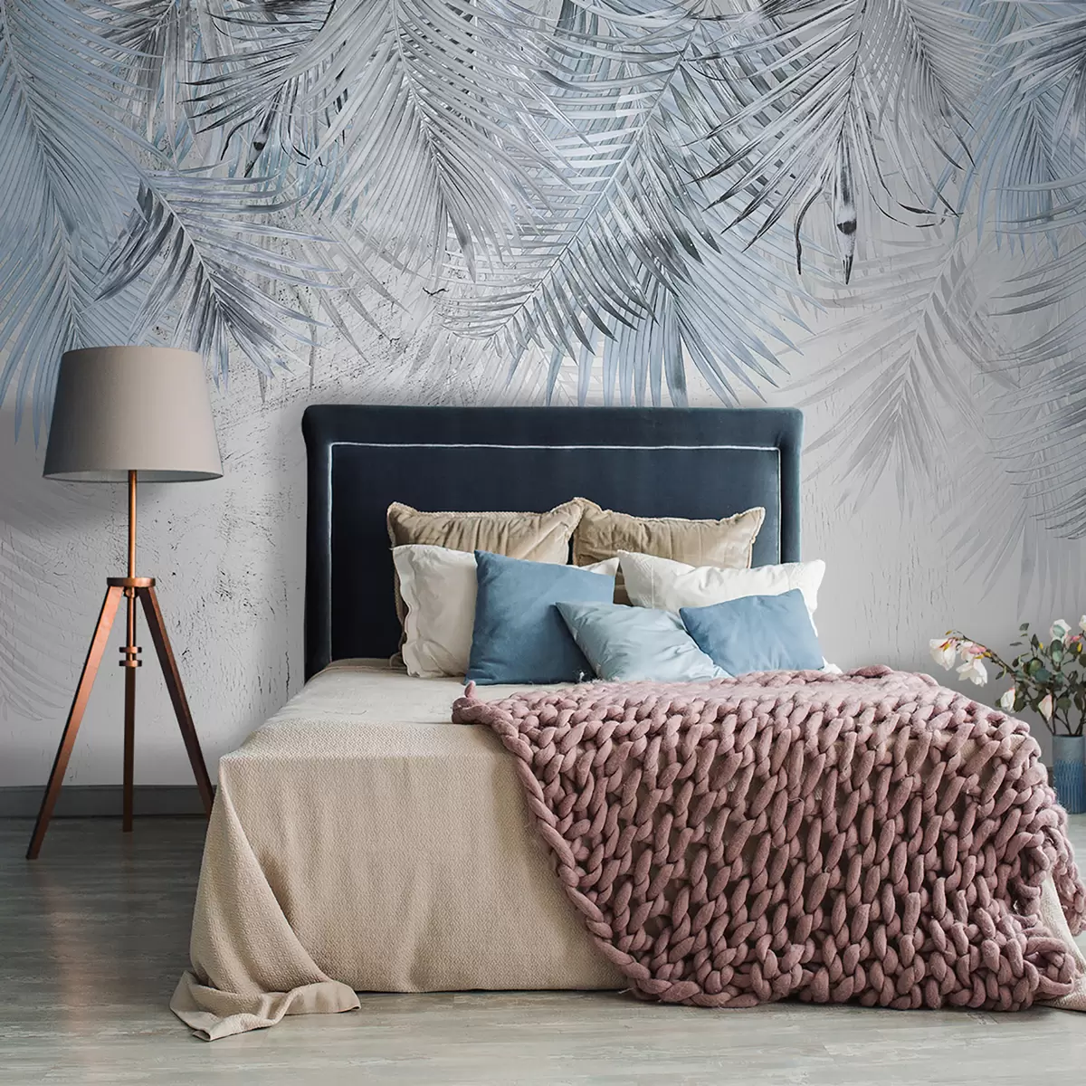 Fototapet Blå tropiska löv i grunge stil Nr. u93843v3