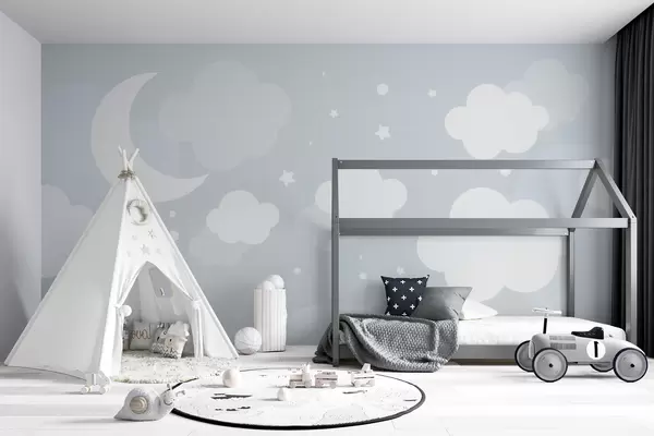 Fototapet Söt tapet med moln, stjärnor och måne på en blå bakgrund Nr. u97510