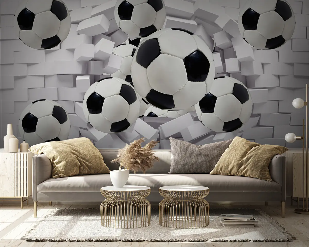 Fototapet Fotbollar på bakgrunden av en tegelvägg Nr. u94958