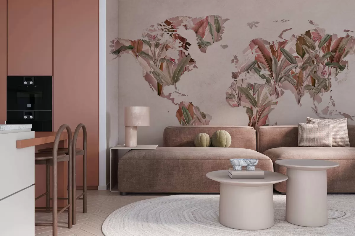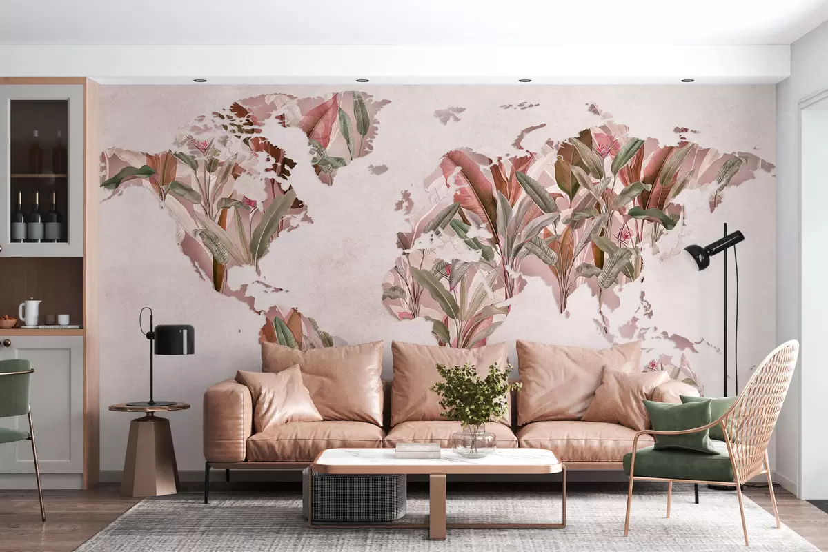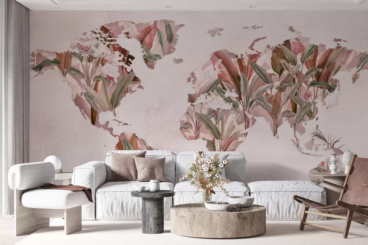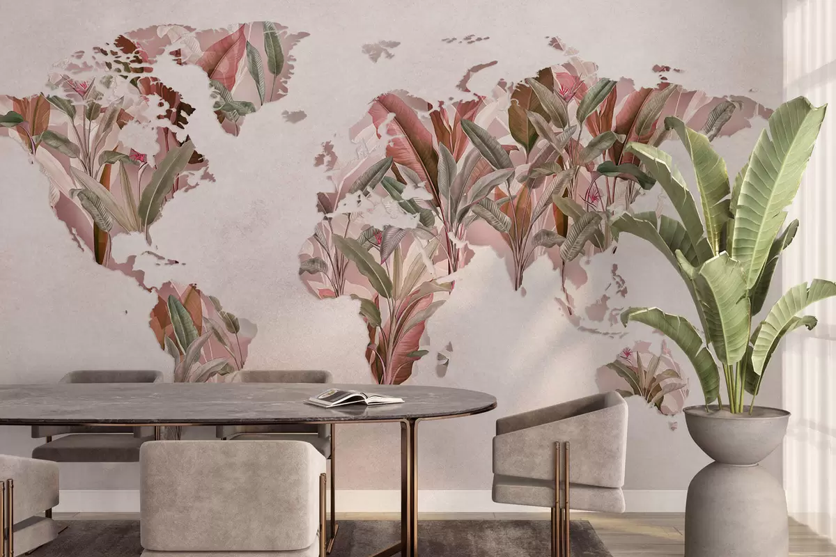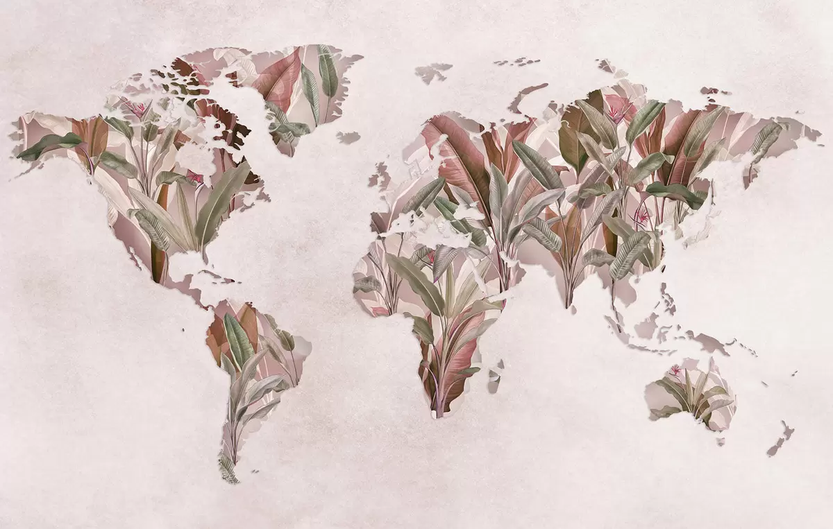 Fototapet En rosa världskarta gjord av bananblad Nr. c00007v2