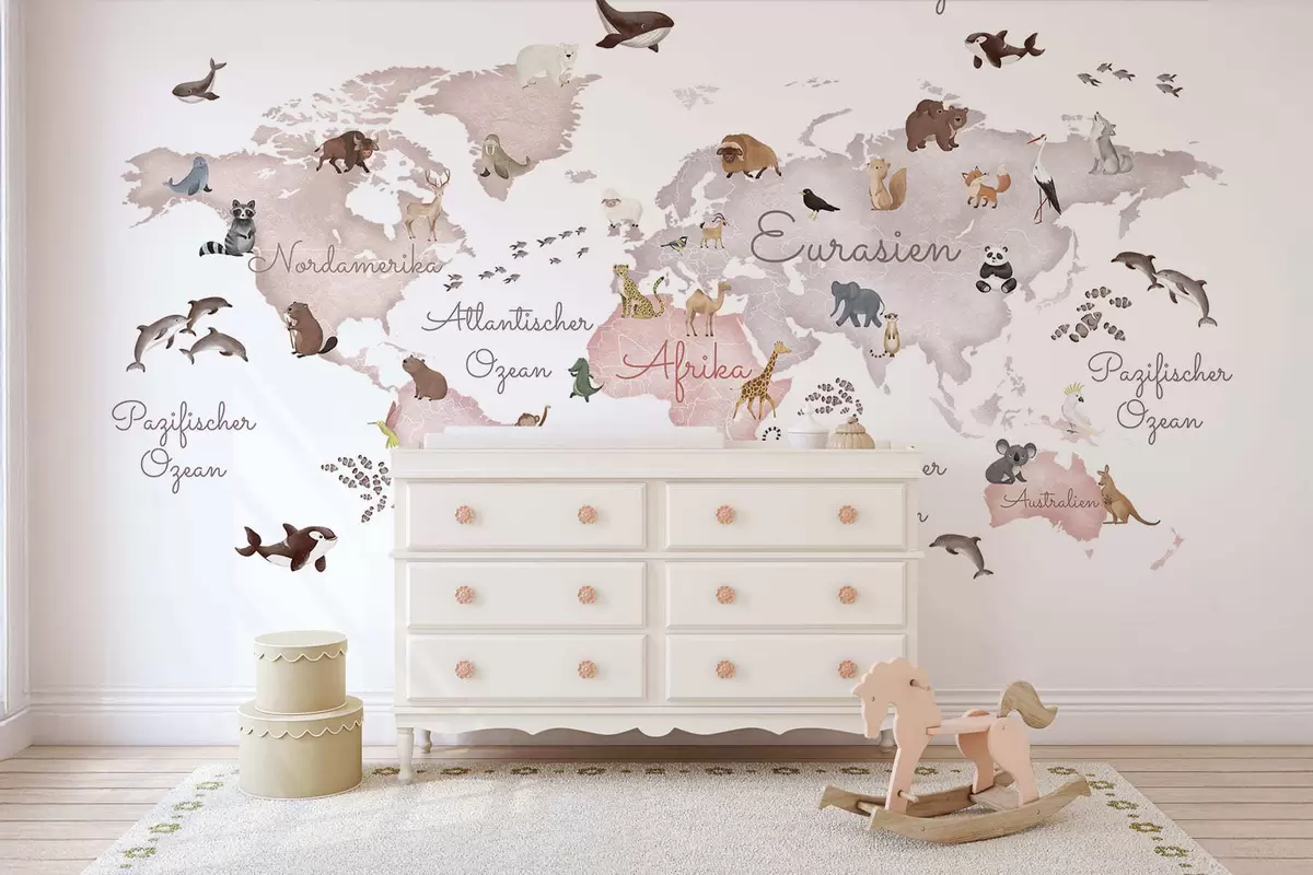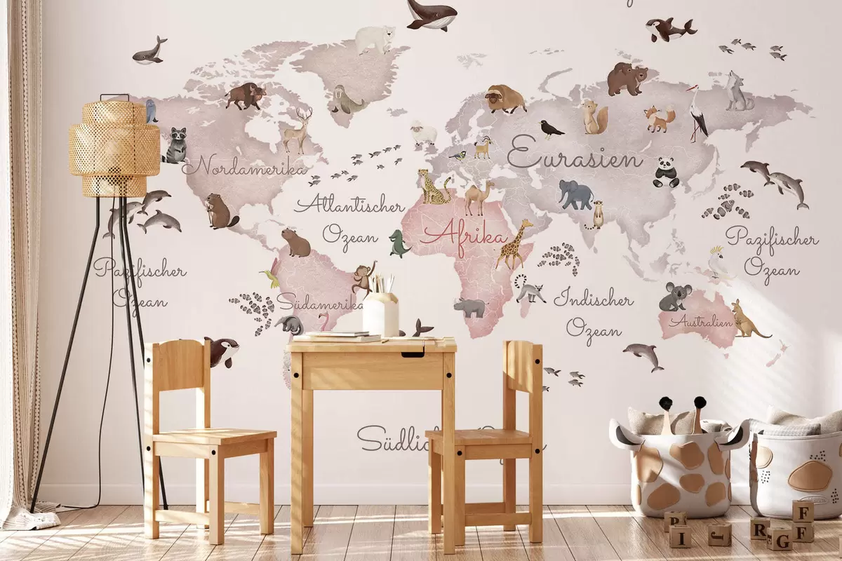 Fototapet En beige karta i akvarellstil med djur. Text på tyska Nr. c00012dev3