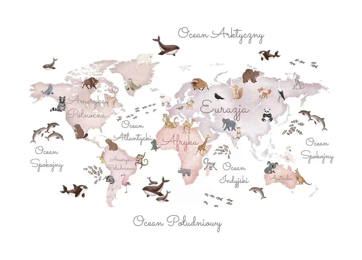 Fototapet En beige karta i akvarellstil med djur. Text på polska Nr. c00012plv3
