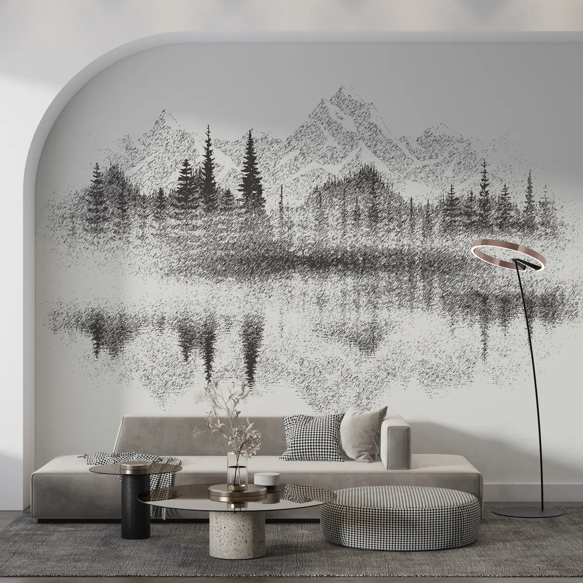 Fototapet Skogen och bergen speglar sig i sjön Nr. u98808