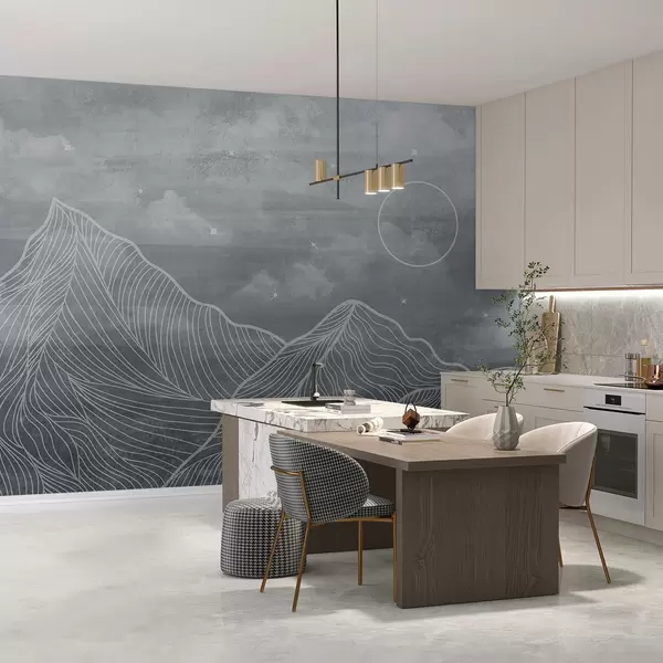 Fototapet Grunge-textur med moln och berg, grå färg, naturtema Konst Nr. u98838v1