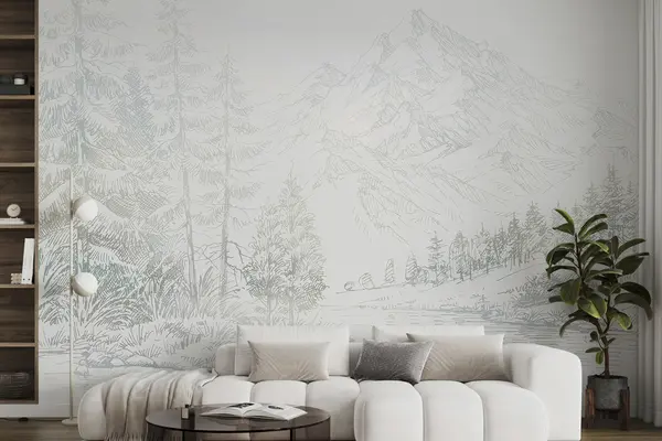 Fototapet Alpint bergslandskap, minimalism, gröna färger Nr. u99569