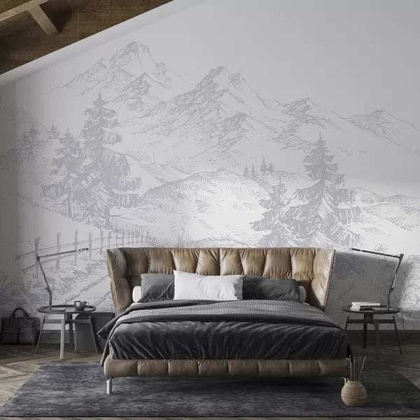 Fototapet Fridfullt landskap med berg och träd Nr. u99572v2