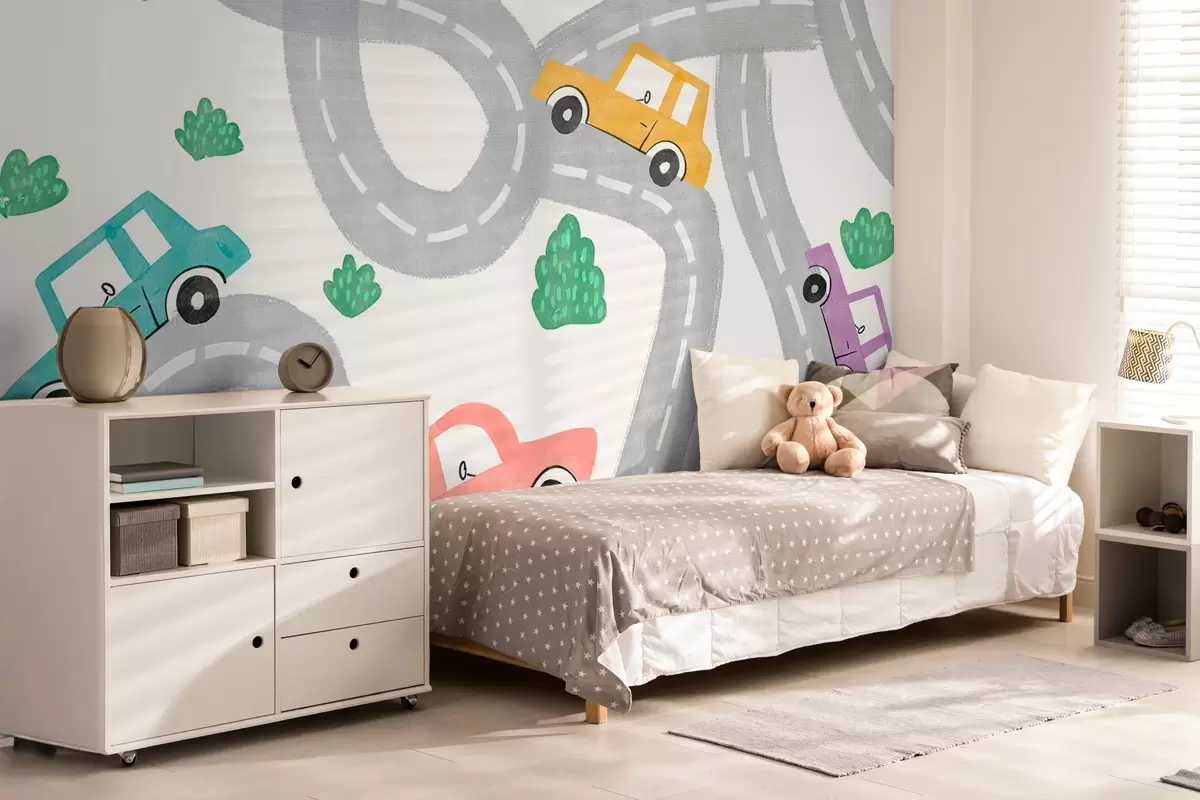 Fototapet Färgglada bilar på en slingrande väg Nr. w00599