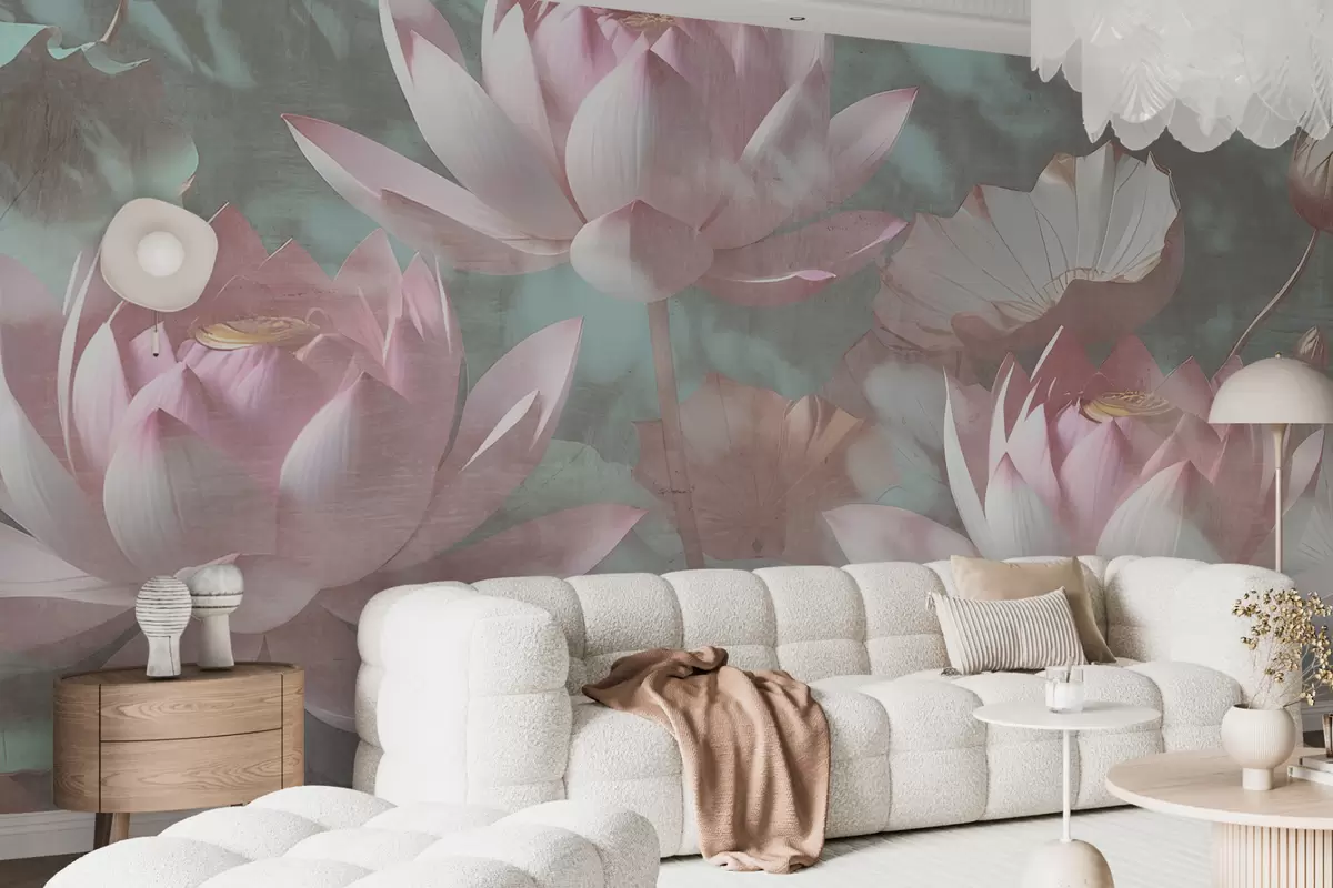 Fototapet En närbild av flera känsliga rosa lotusblommor mot en mjuk, suddig bakgrund Nr. w00710