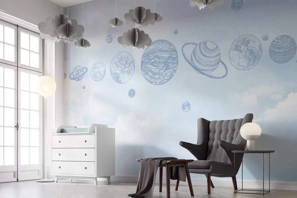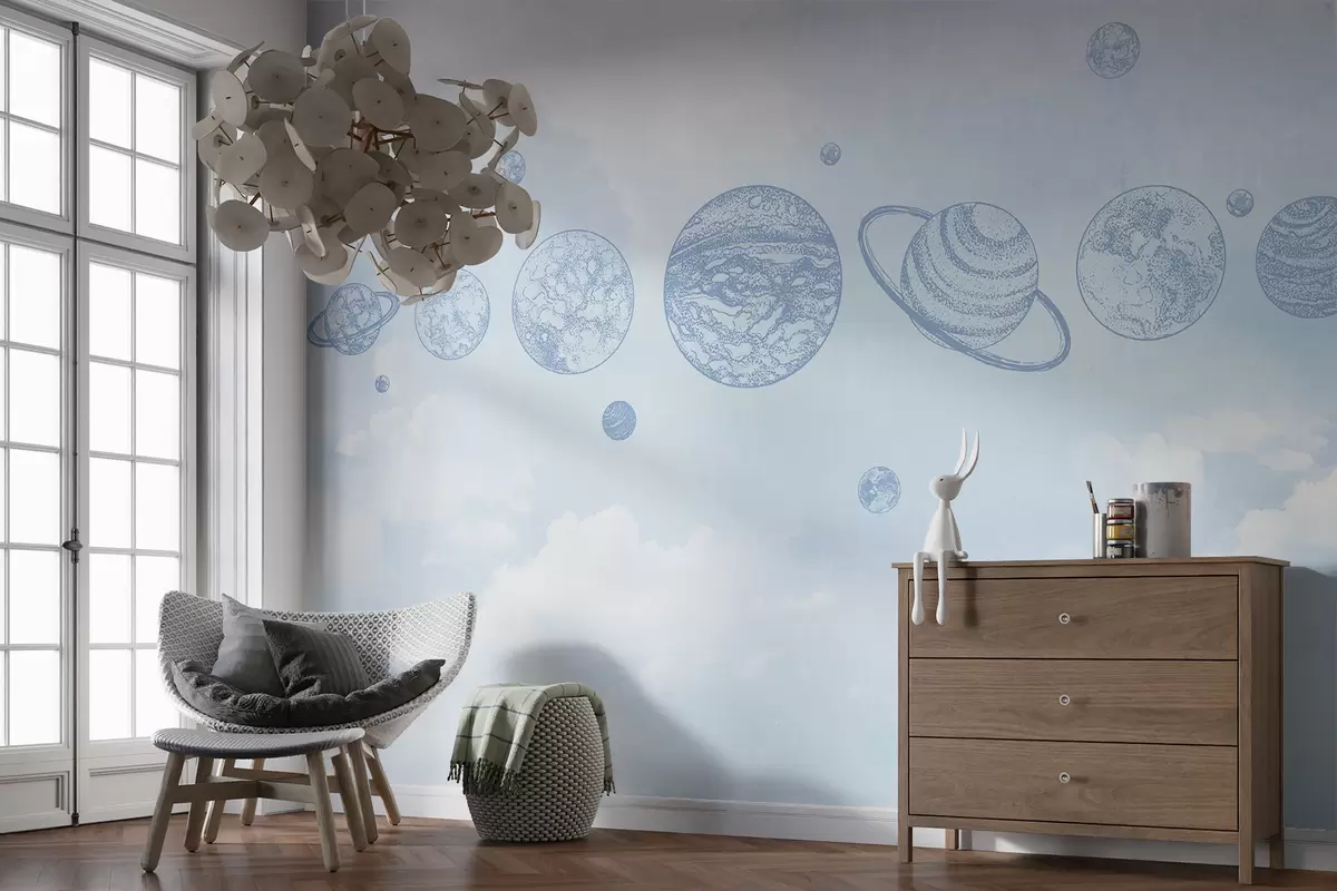 Fototapet Flytande planeter på en molnig, pastellfärgad eterisk himmel Nr. w00738