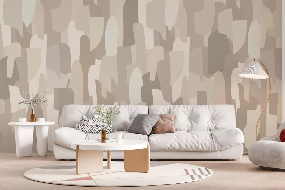 Fototapet abstrakt modern konst tapeter i beige nyanser imitation av färgade bitar, för snygg inredning Nr. w00987