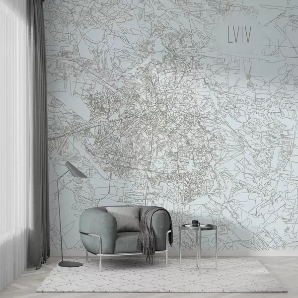 Fototapet Förstorad karta Porträtt väggmålning av staden Lviv på en ljusblå bakgrund Nr. w01023