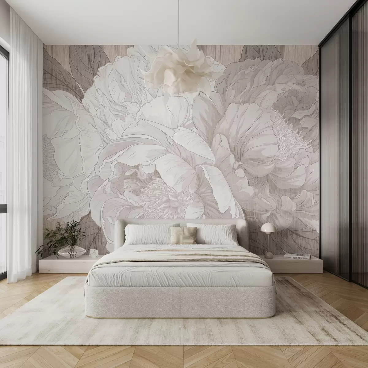 Fototapet Strukturerade stora pionblommor i beige nyanser Nr. w01141