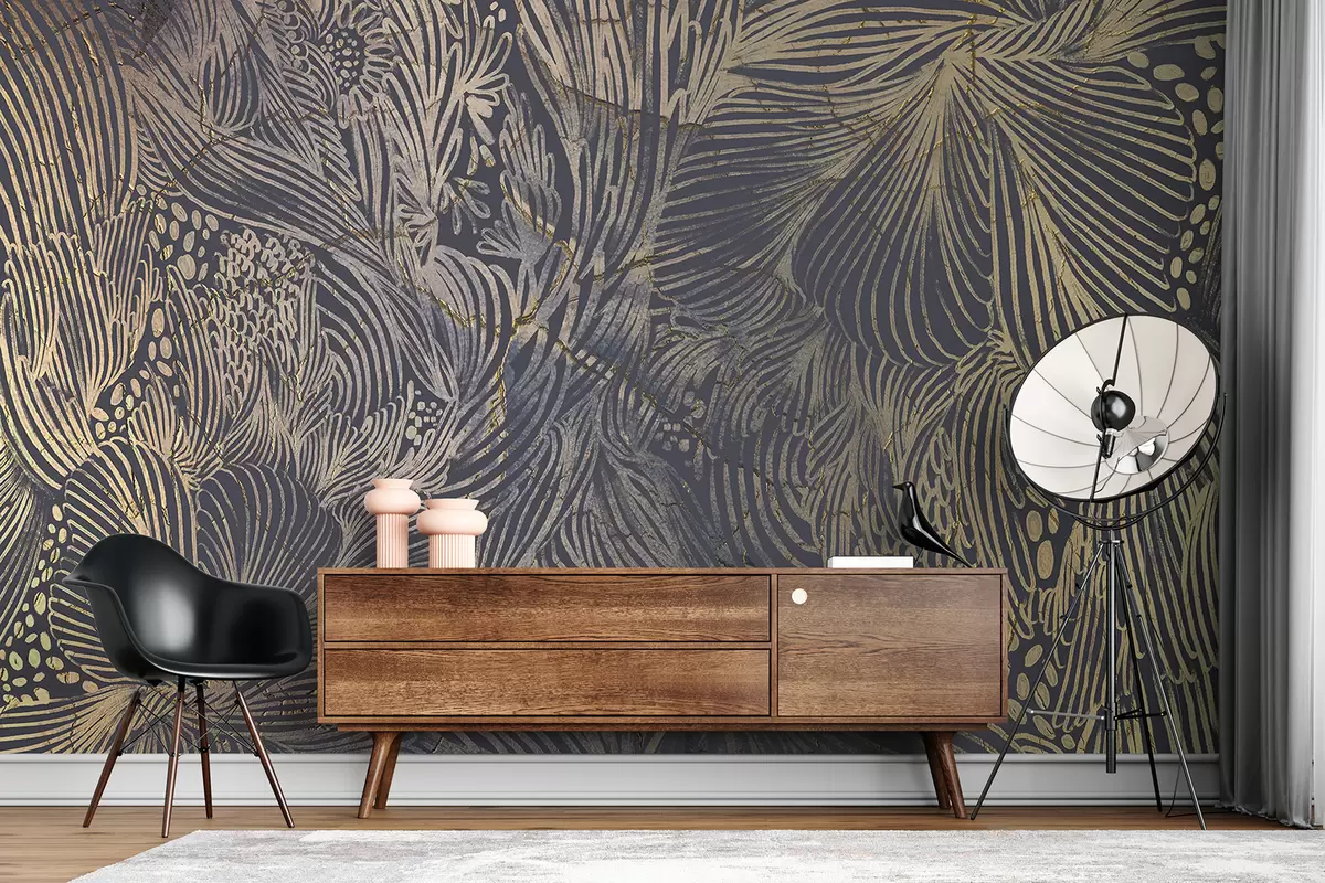 Fototapet Abstrakt texturerat lyxigt tryck med överlappande organiska former och linjer Nr. w01243