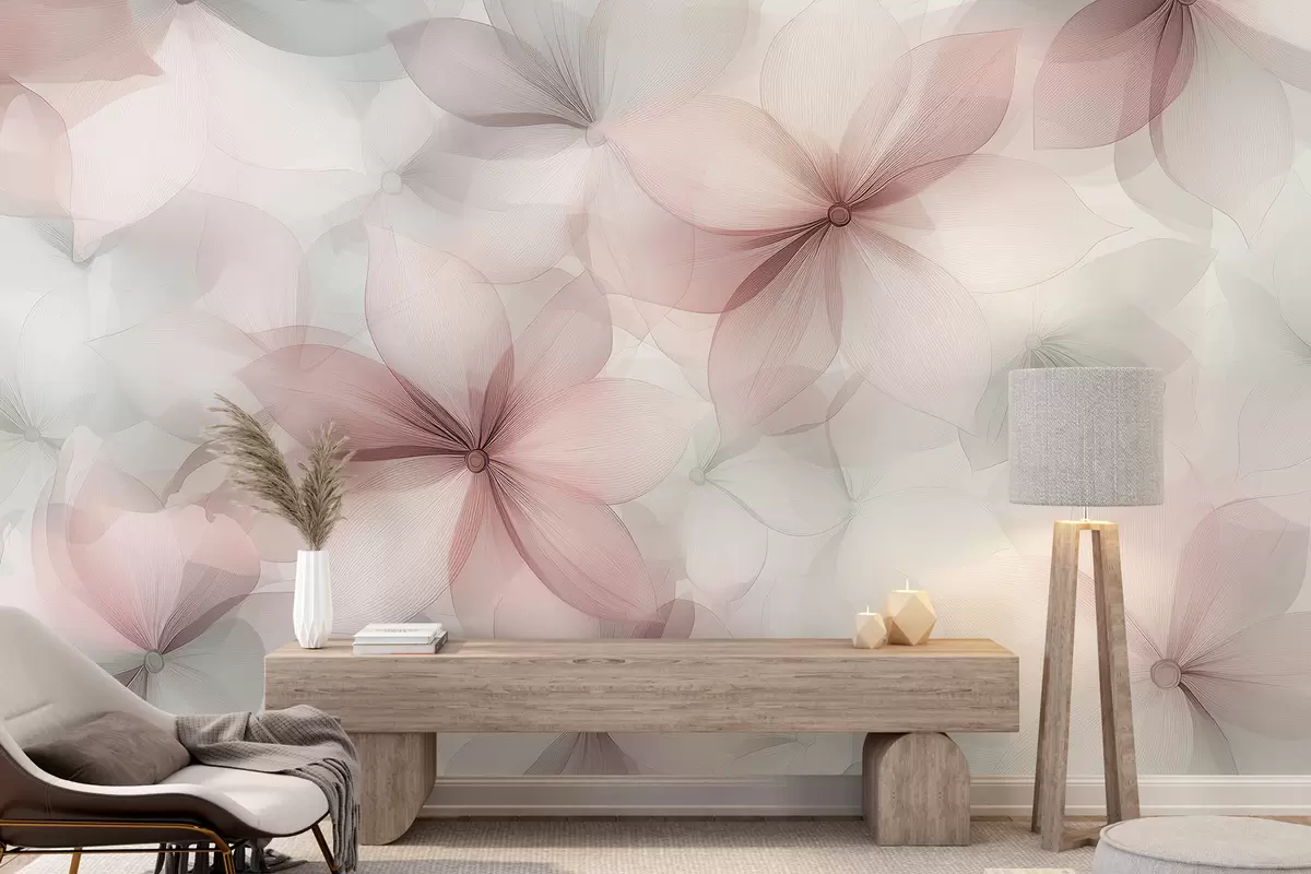 Fototapet Blommig sammansättning, mjuka rosa och gråa färger, blommönster Nr. w01446v1