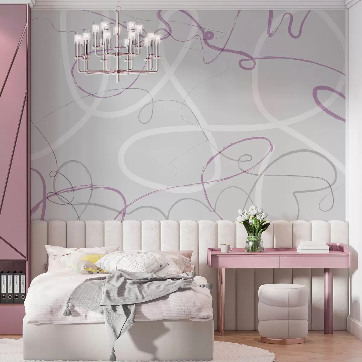 Fototapet Abstrakta lila linjer på en grå bakgrund Nr. w01455v2