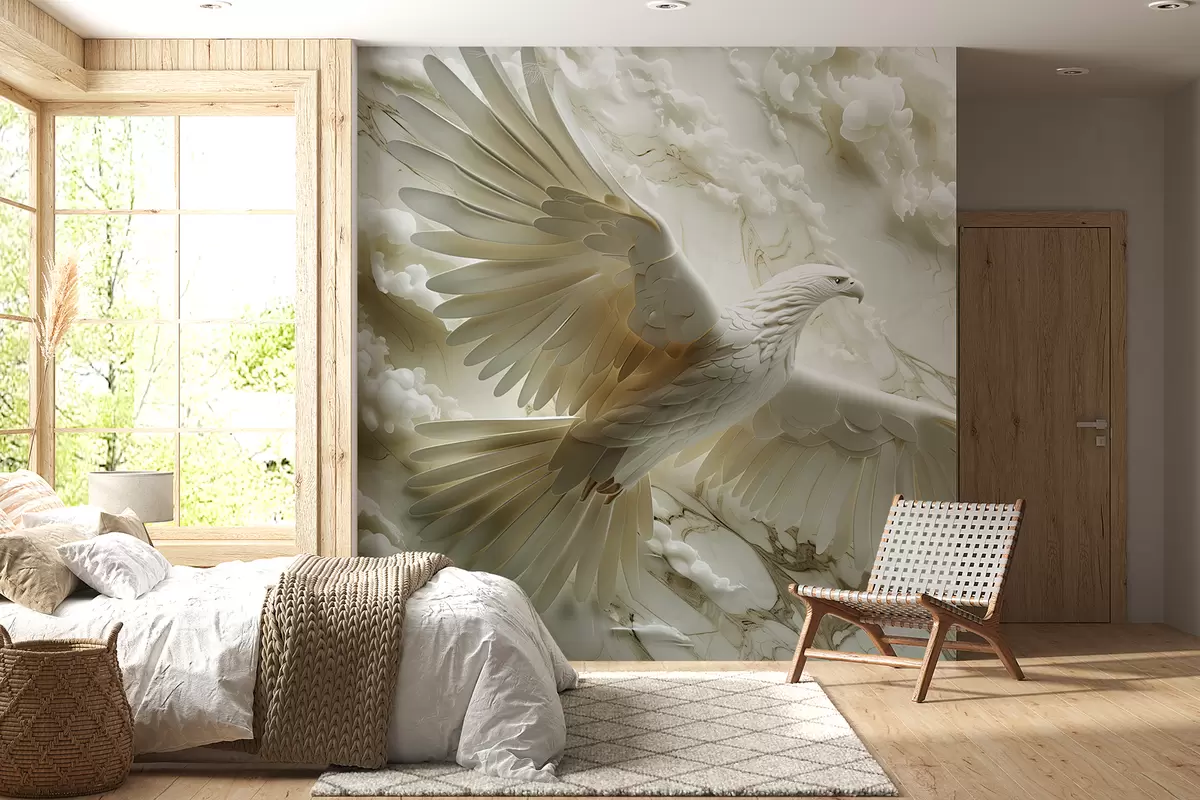 Fototapet 3D vit örn på en bakgrund av moln och marmor Nr. w01477