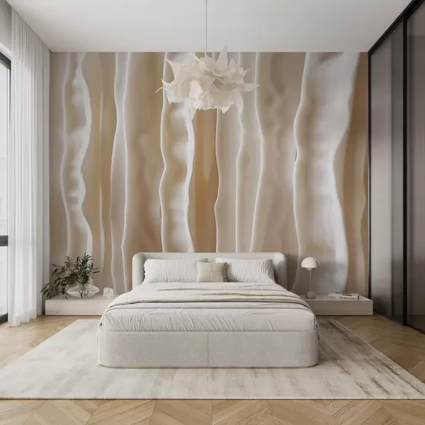 Fototapet Abstrakt scen gjord av organiskt material, snidade vertikala 3D-ränder i beige färg w01541