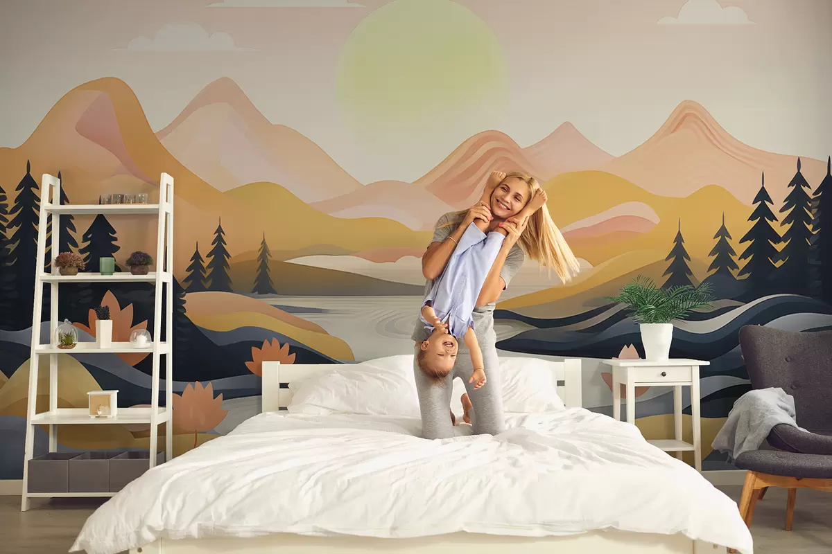 Fototapet daggry på en sprød efterårsmorgen med bjerge Nr. w01657