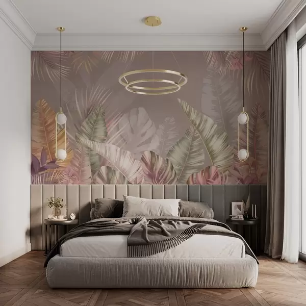 Fototapet Tropiska blad i mjuka pastellfärger Nr. w01684