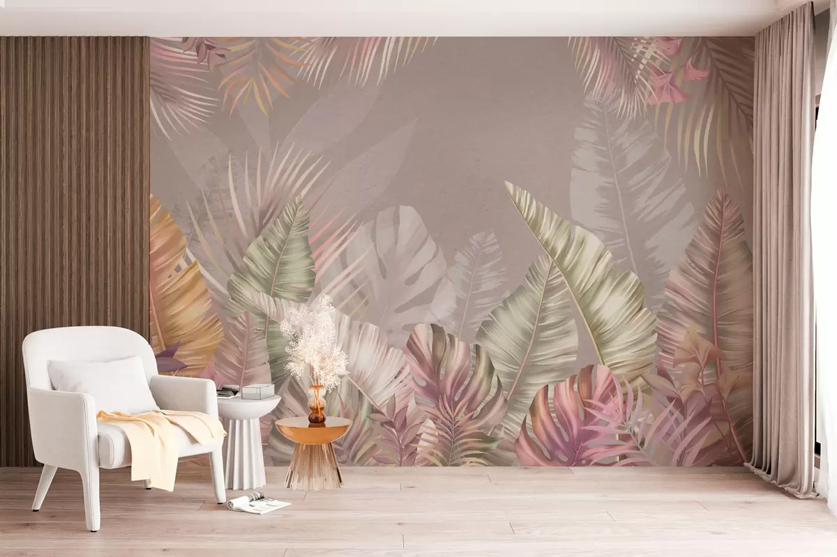 Fototapet Tropiska blad i mjuka pastellfärger Nr. w01684