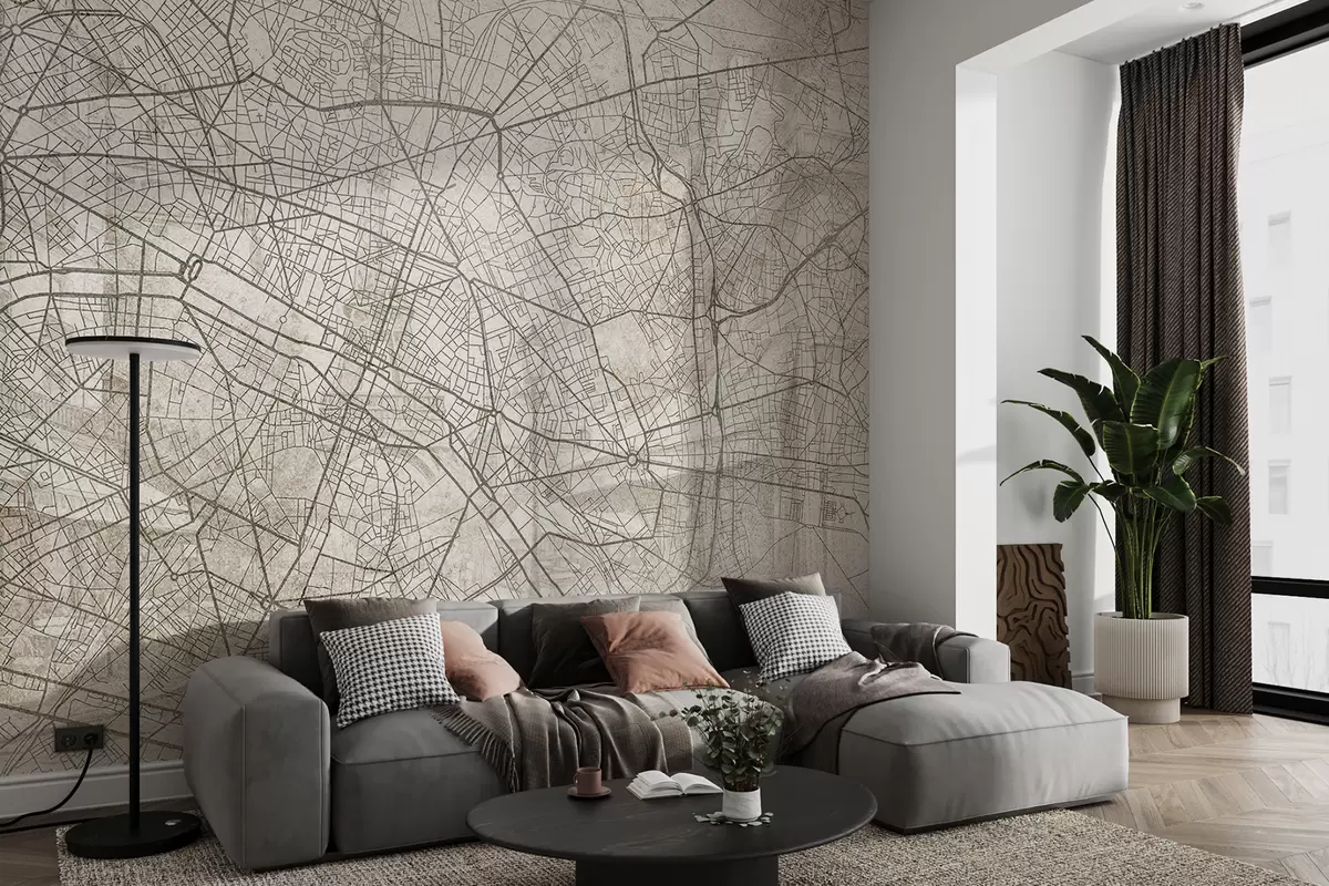 Fototapet Paris stadskarta, linjeteckning, arkitektur, Frankrike, beige färger Nr. w01697