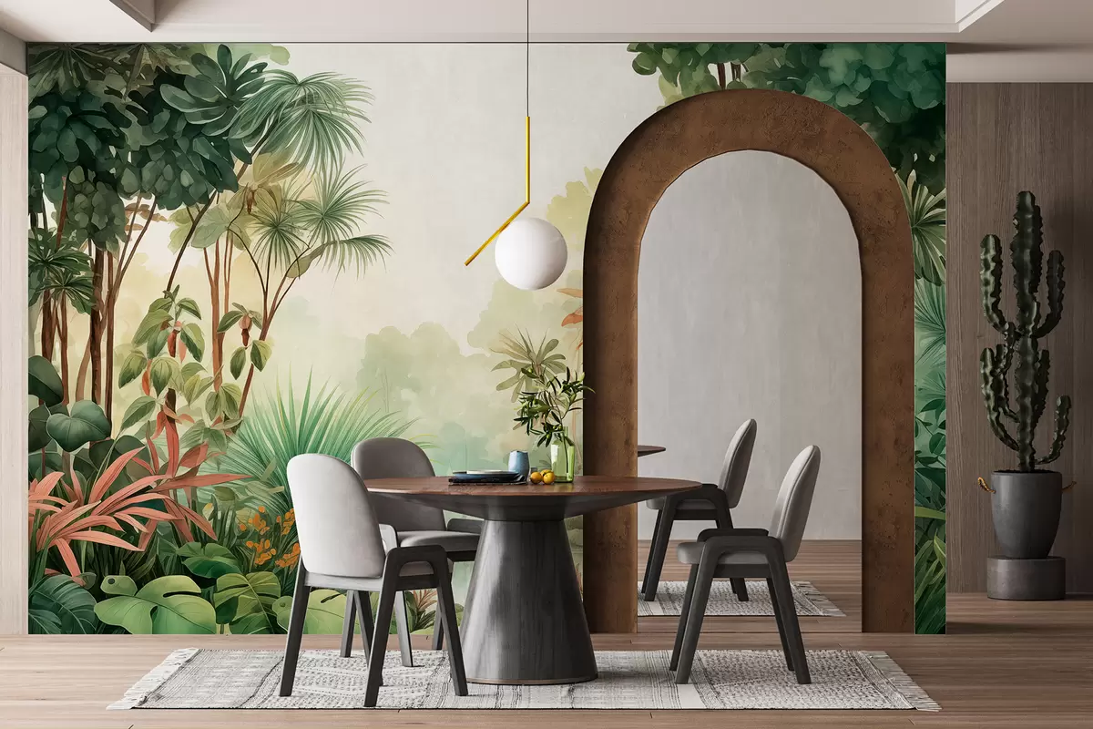 Fototapet Akvarell djungelskog, palmer, sjö, grönska Nr. w01784