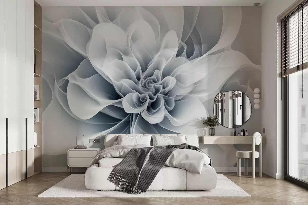 Fototapet Elegant abstrakt bild av en blomma med släta linjer i blått Nr. w01853