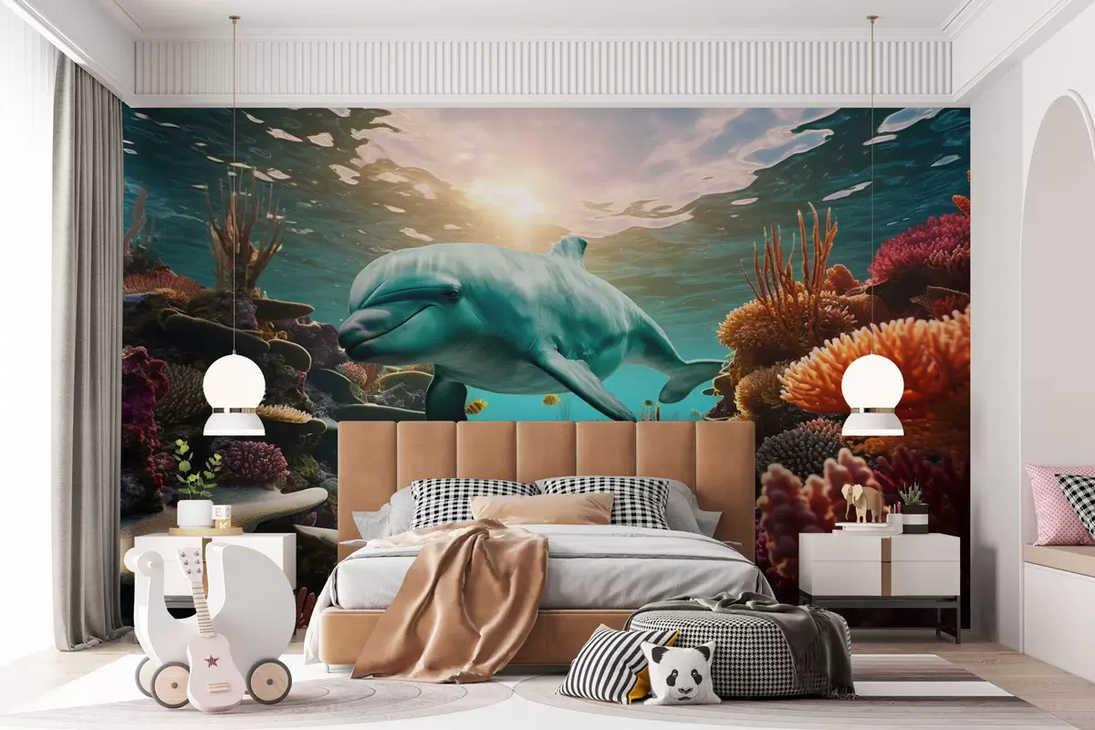 Fototapet Stor delfin i undervattensvärlden i korallrev Nr. w01873