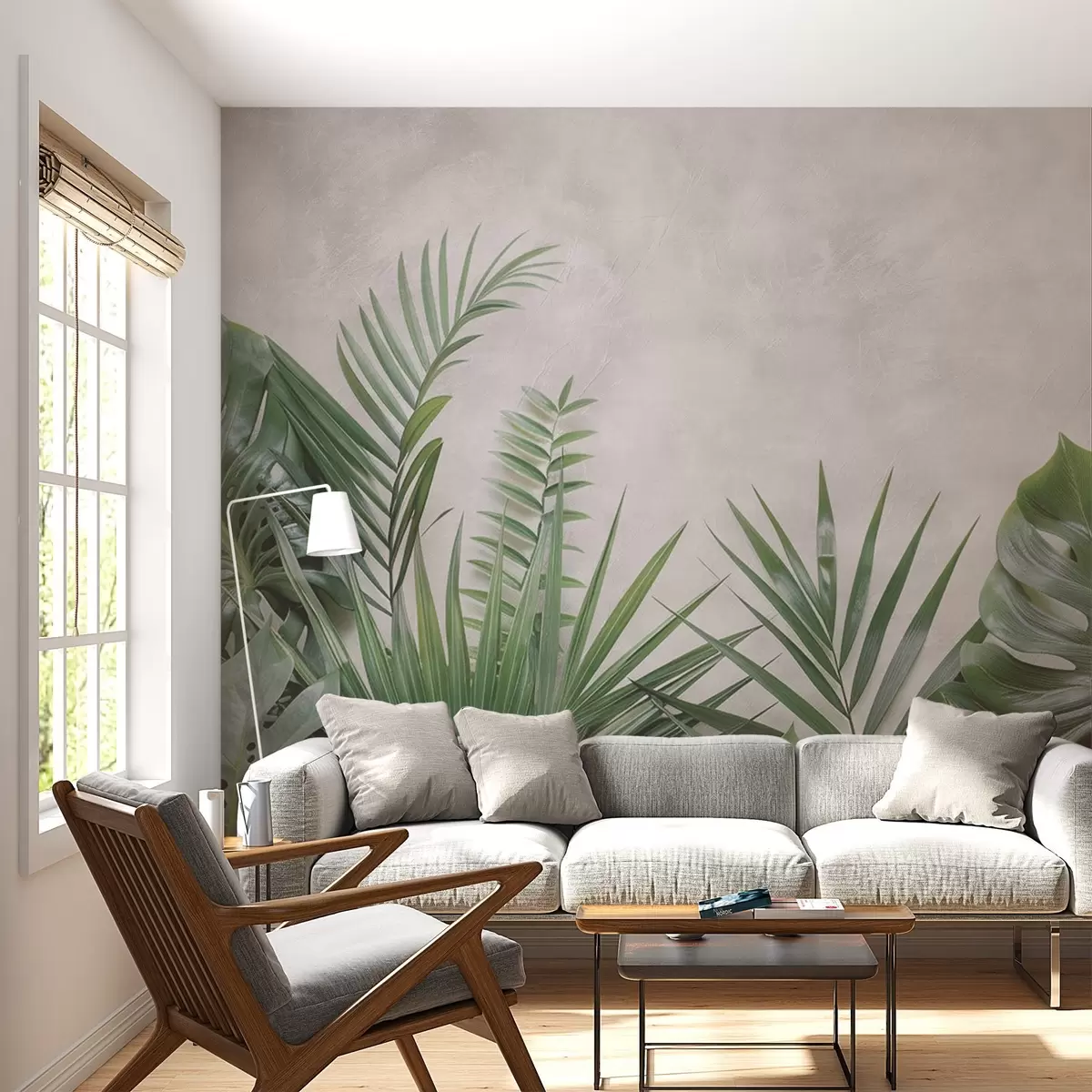 Fototapet Tropiska snår på en bakgrund av ljus betong Nr. w01898