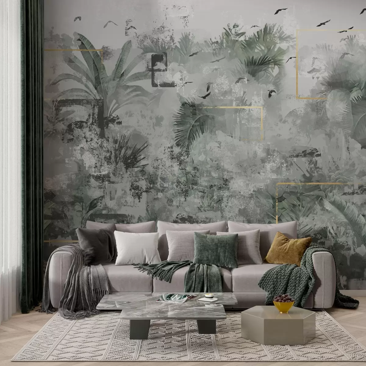 Fototapet Silhuett av regnskog i grungestil Nr. w01917