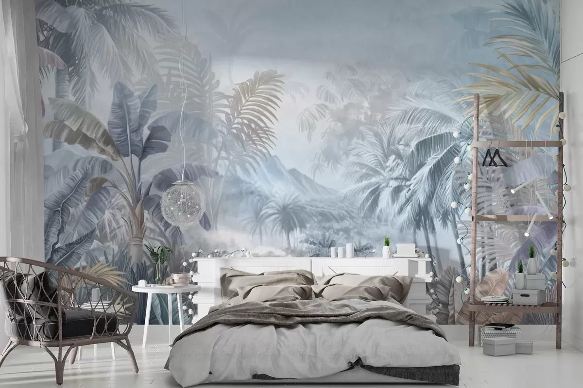 Fototapet Tropisk skog i mjuka blå toner Nr. w01931