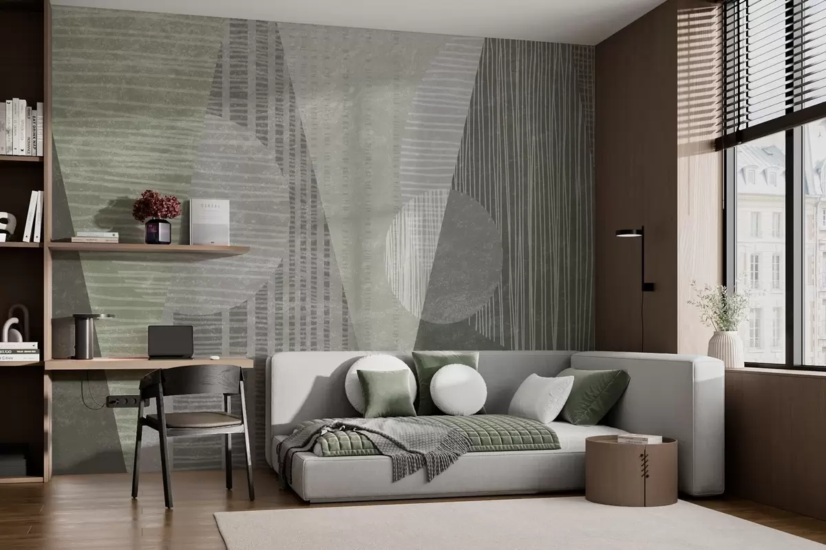 Fototapet Geometri i modern vintagestil i gröna färger Nr. w02003v2