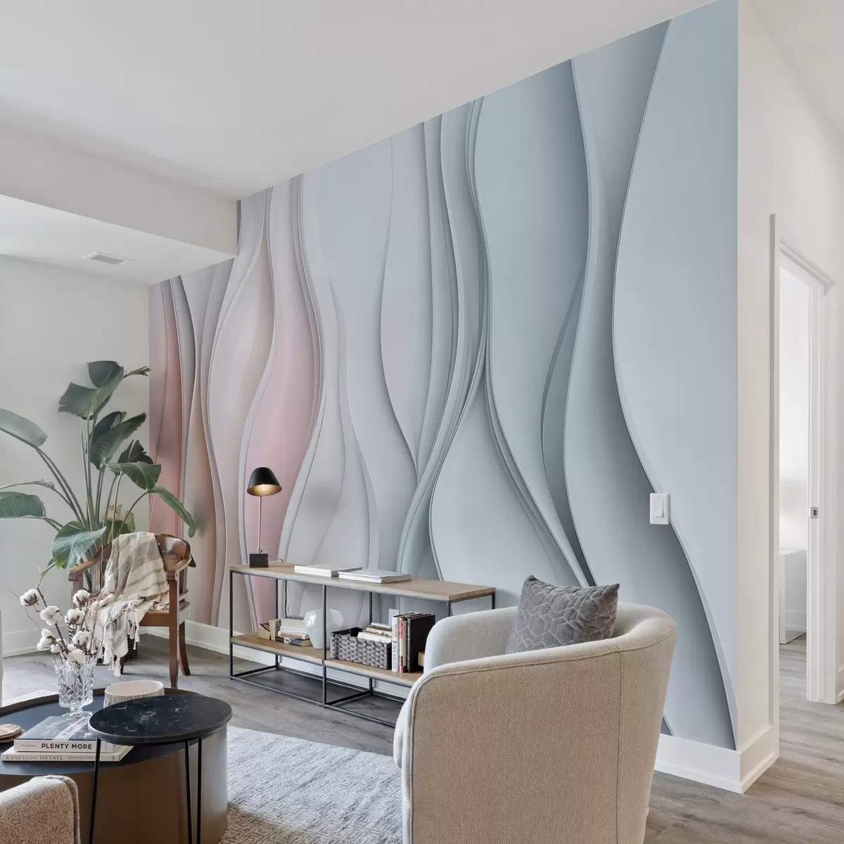 Fototapet Volymetriska färgvågor på väggen Nr. w02013