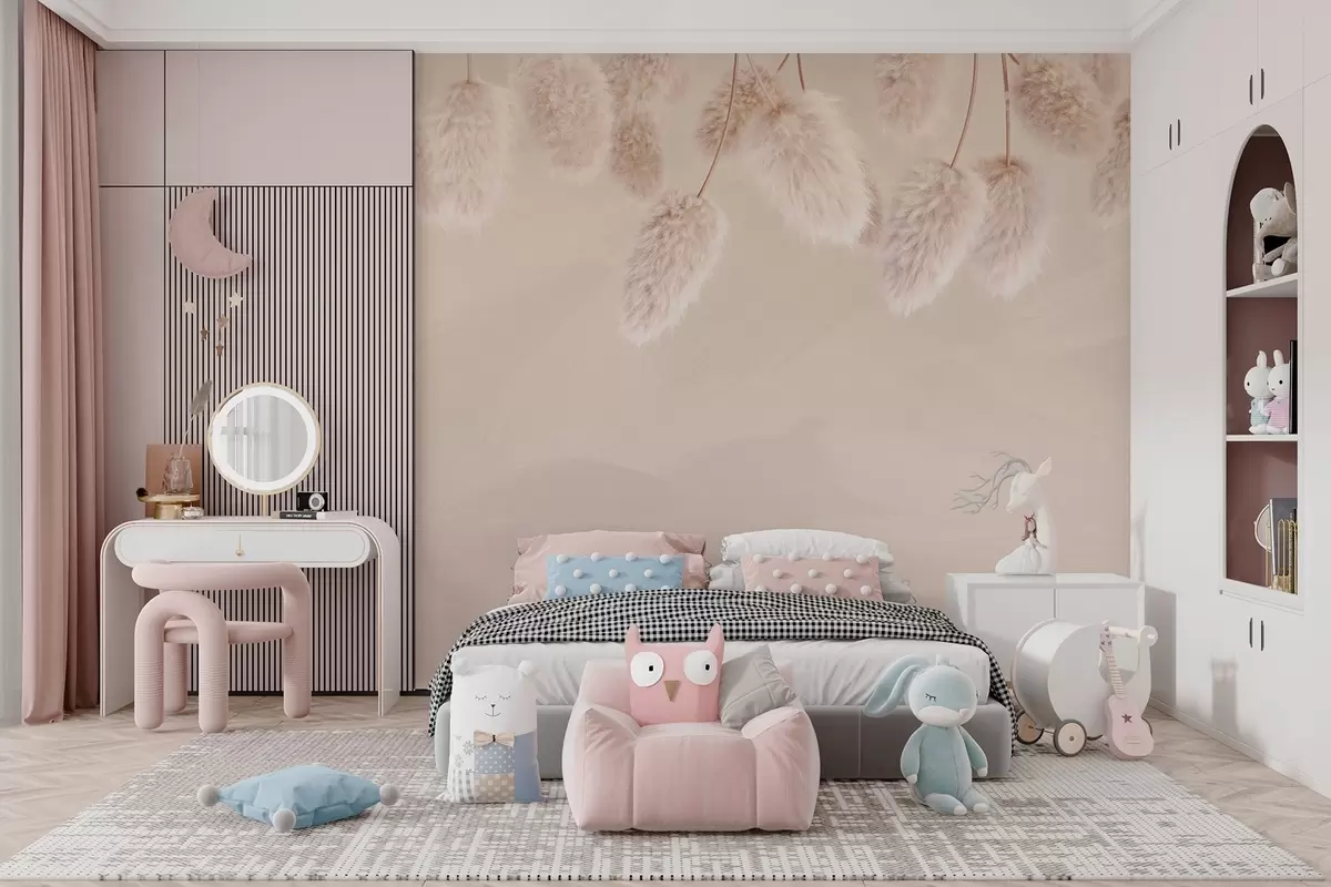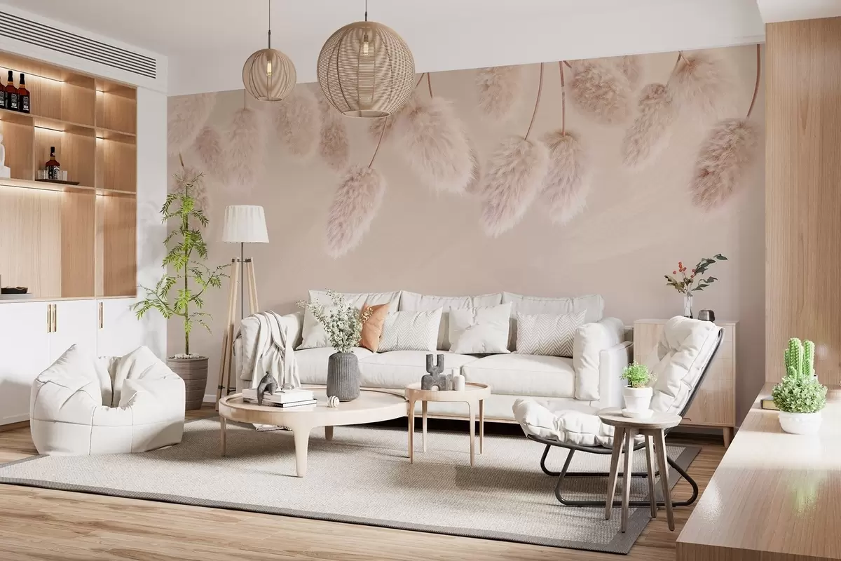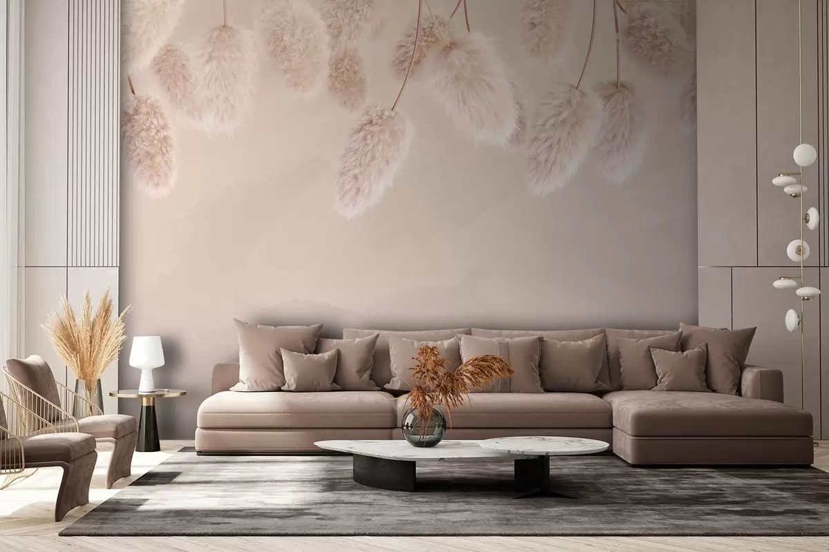 Fototapet Mjuka moln av lagurus mot en bakgrund av mjuka rosa streck Nr. w02071