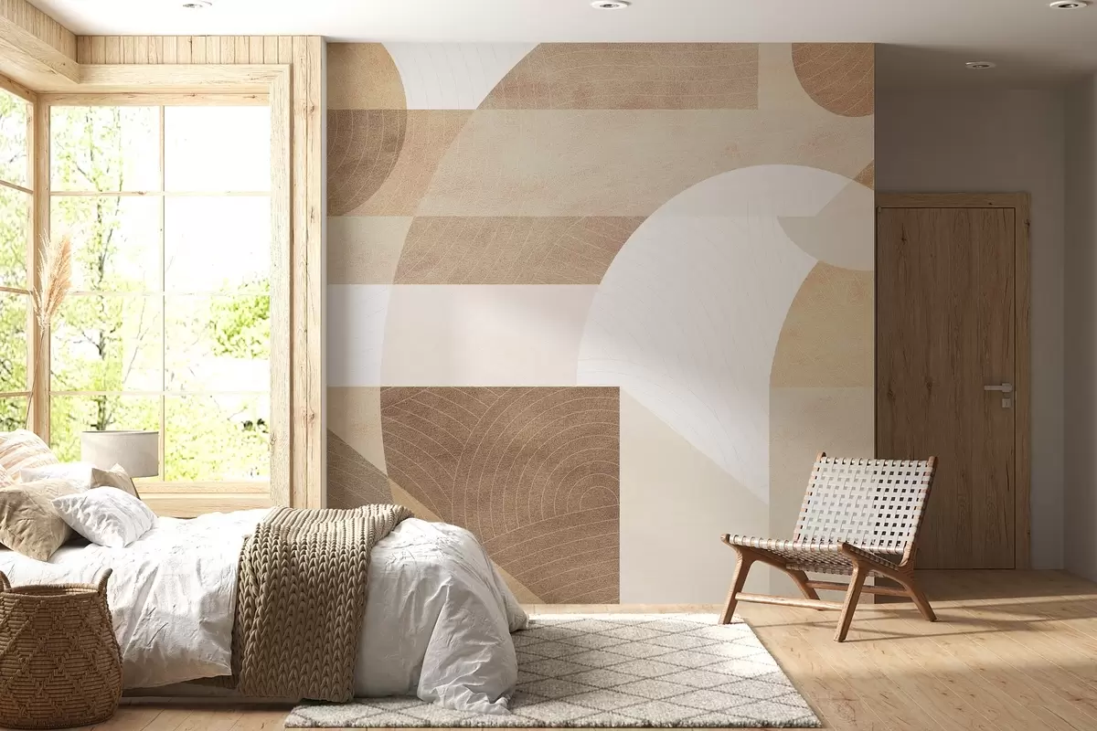 Fototapet Modern geometri med abstrakta former, strukturerade detaljer i beige och bruna toner Nr. w02140