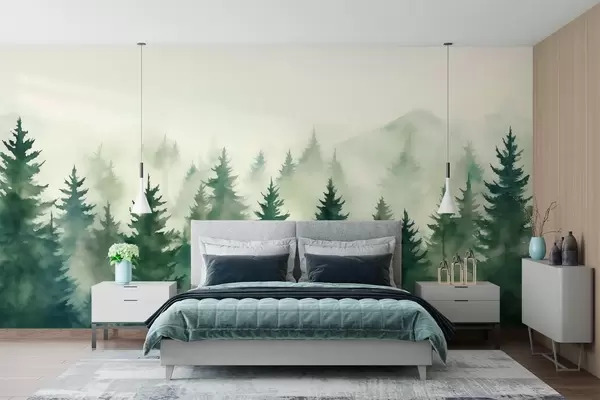 Fototapet Dimmig skog i mjuka gröna toner Nr. w02161