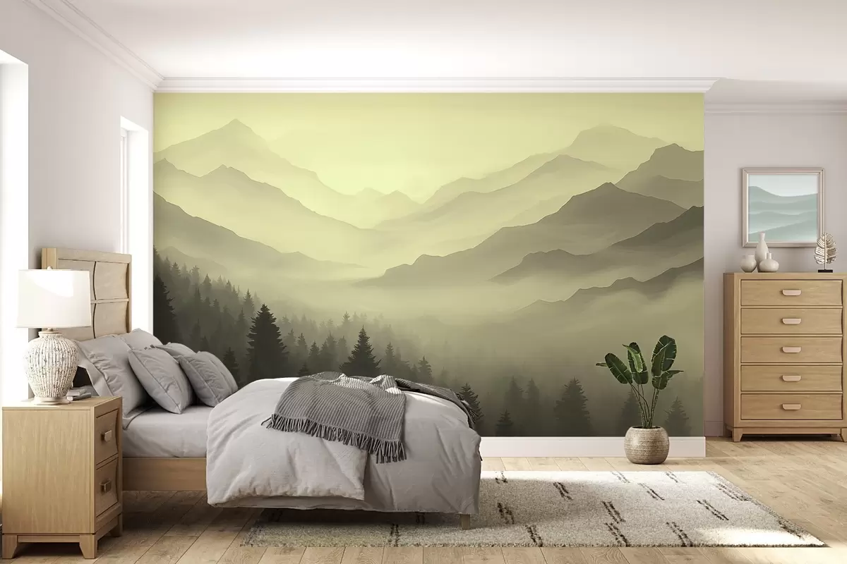 Fototapet Skog och berg i gröna nyanser Nr. w02186v1