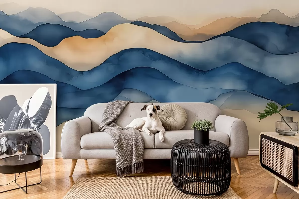 Fototapet Abstrakta blå-beige vågor som påminner om berg Nr. w02196