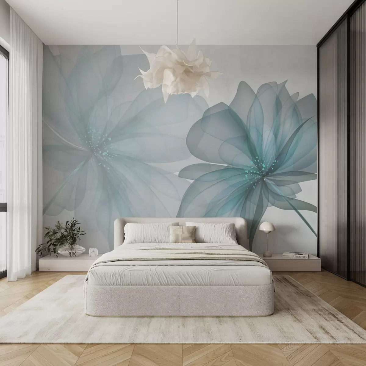 Fototapet genomskinliga stora blå blommor Nr. w02205v1