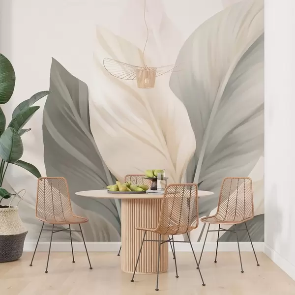 Fototapet Beige och grå löv på en ljus bakgrund Nr. w02217